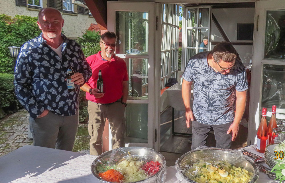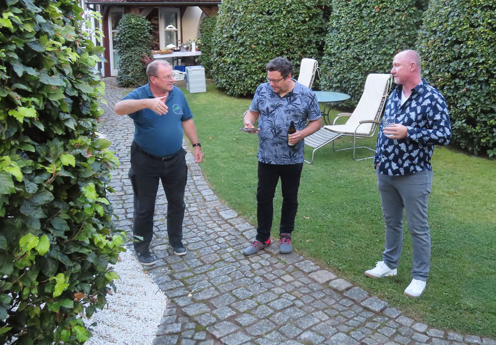 Unser diesjähriges Sommerfest fand wieder im Garten von Sabine und Markus statt. Die schönen Gartenanlagen sowie das Anwesen, ideal für solche Events geeignet, wurden von allen Beteiligten lobend hervorgehoben. Die Grillplatte sowie Snacks, von Markus Schwester mitgebracht, kamen bei allen gut an und wurden dankbar verspeist. Insgesamt war es ein sehr schöner und rundum gelungener Abend im Kreise von Freunden. Ein ganz besonders herzlicher Dank geht an Sabine, Markus + Schwester als Gastgeber.