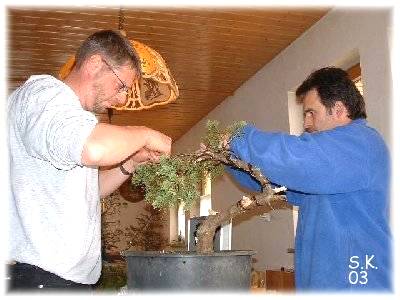 Dank der Euro Bonsaigala 2002 hatten wir ein bisschen (wirklich nicht so viel!) Geld eingenommen, welches den Vereinsmitgliedern zugute kommen sollte, ohne die diese Superveranstaltung gar nicht möglich gewesen wäre. Nach langen Überlegungen wurde der Entschluss gefasst, einen Teil des Geldes für Workshops anzulegen. Es dauerte auch nicht lange und man hatte sich über einen ersten WS- Leiter geeinigt, welcher kein geringerer als der einzigartige Walter Pall sein sollte.