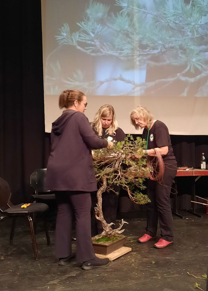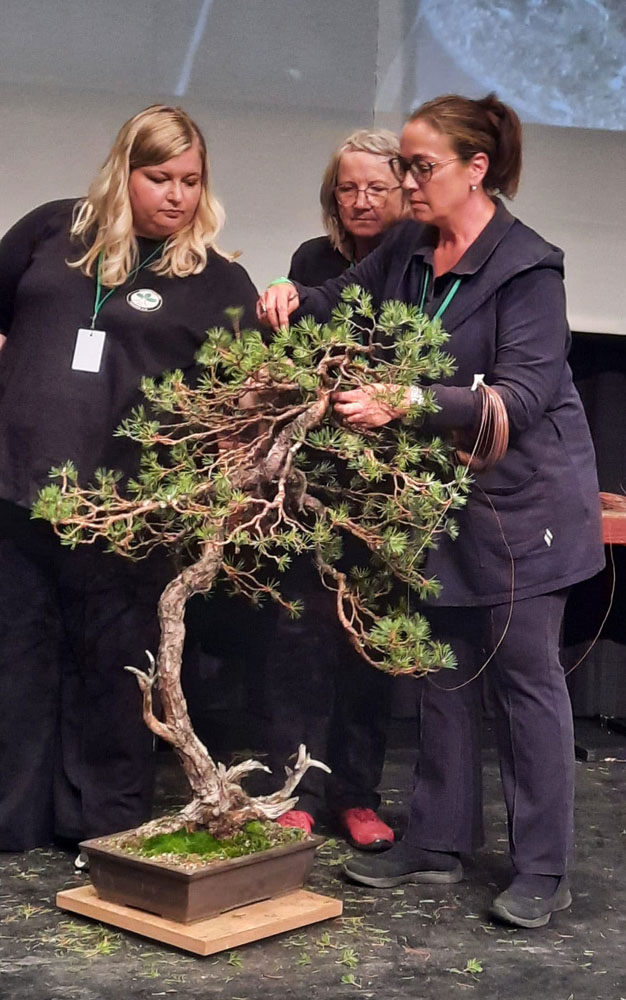 Zu den diesjährigen Byerischen Bonsaitagen reisten auch einige Mitglieder unseres Vereines. Highlight für unseren Verein war die Live-Vorführung unserer Michaela Lutz einer Bonsaigestaltung. Unser 1. Vorstand Peter Schardt war bei dieser Veranstaltung als Schiedsrichter tätig. Dafür ein großes Dankeschön an beide Mitglieder! |