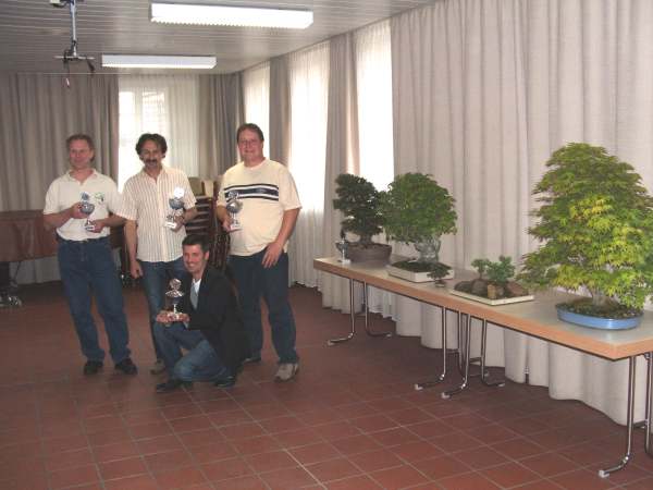 Auch dieses mal wurde wieder der schönste Vereinsbonsai von den Besuchern und den Mitgliedern gewählt. Einen Pokal gab es jeweils für den Ersten, Zweiten und Dritten schönsten Bonsai, sowie für den schönsten Wald und den schönsten Shohin.