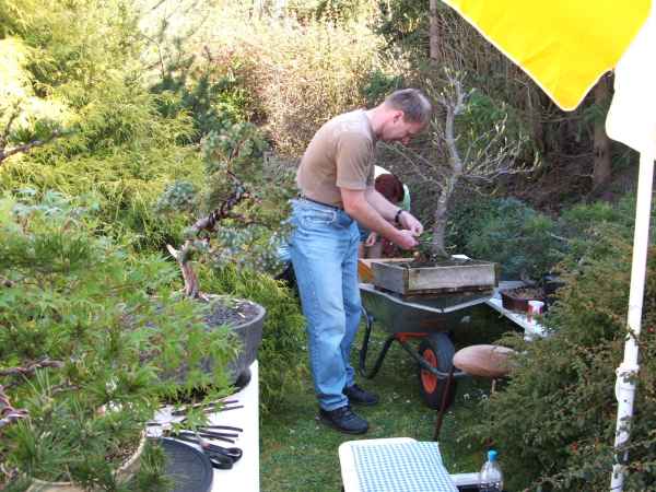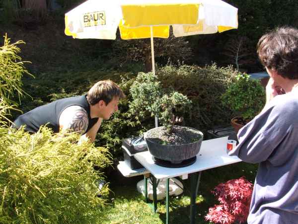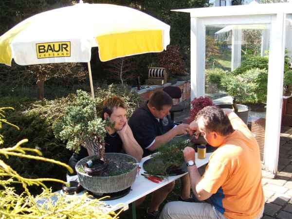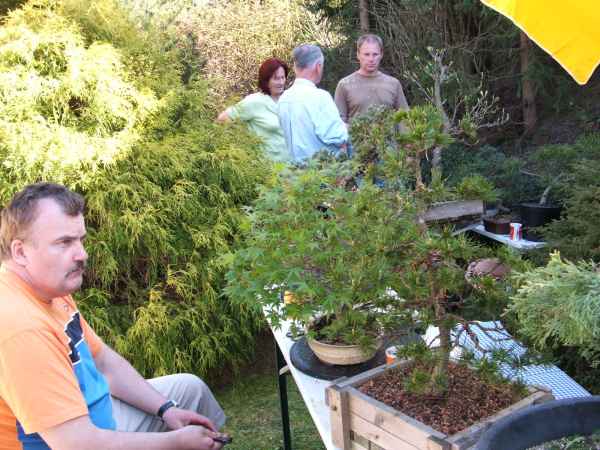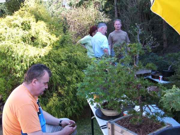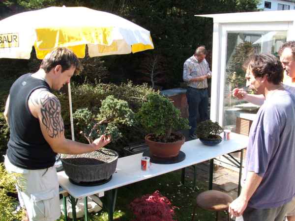 Am Samstag den 14.04.07 trafen wir uns bei Peter im Garten zu einem "kleinen" Workshop. Es kamen viele Vereinsmitglieder und auch zwei Gäste, die sich sehr für Bonsai interessieren. Vielen Dank unserem Gastgeber!