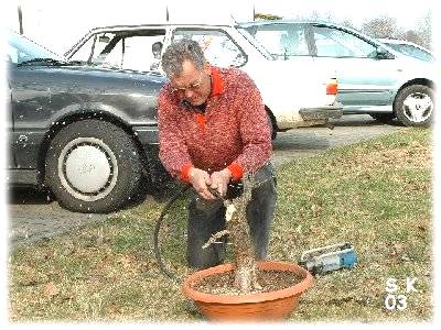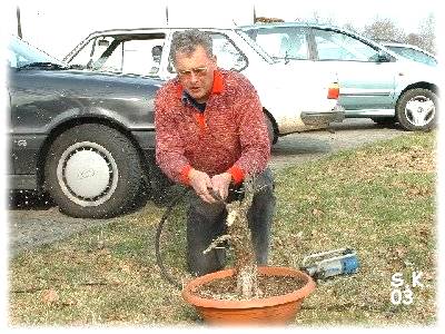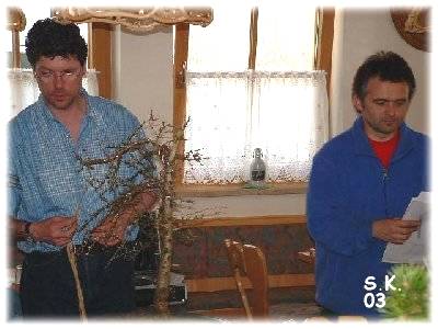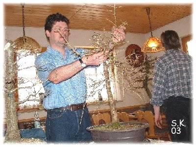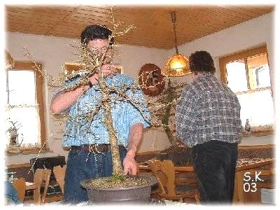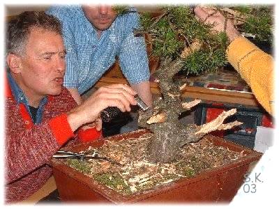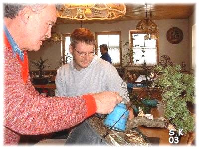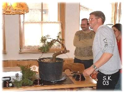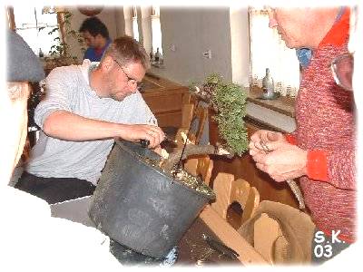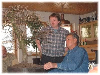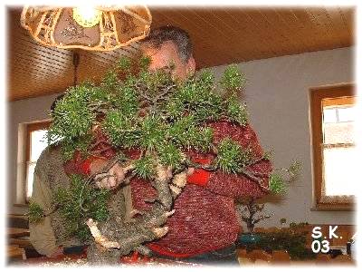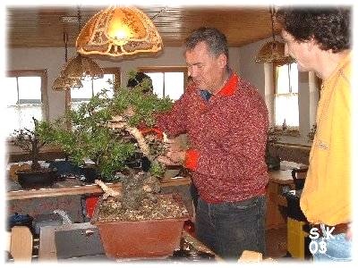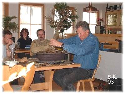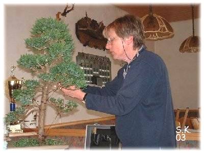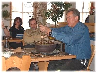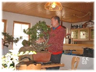 Dieser Walter Pall ist wirklich eine einzigartige Person, nicht nur dass er sehr viel über Bonsai weis, er versteht es auch dieses Wissen an den Zuschauer weiterzugeben und ihn in seinen Bann zu ziehen und dabei hat man nie das Gefühl , dass es langweilig wäre. Bei "Baumbesprechungen" z.B. redet er unaufhörlich und das nicht nur mit dem Mund sondern mit ganzem Körpereinsatz. Es war ein richtig schöner und informativer Tag, den wir in dieser Art heuer wiederholen werden.