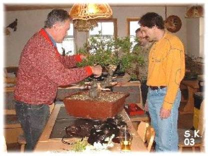 Dank der Euro Bonsaigala 2002 hatten wir ein bisschen (wirklich nicht so viel!) Geld eingenommen, welches den Vereinsmitgliedern zugute kommen sollte, ohne die diese Superveranstaltung gar nicht möglich gewesen wäre. Nach langen Überlegungen wurde der Entschluss gefasst, einen Teil des Geldes für Workshops anzulegen. Es dauerte auch nicht lange und man hatte sich über einen ersten WS- Leiter geeinigt, welcher kein geringerer als der einzigartige Walter Pall sein sollte.